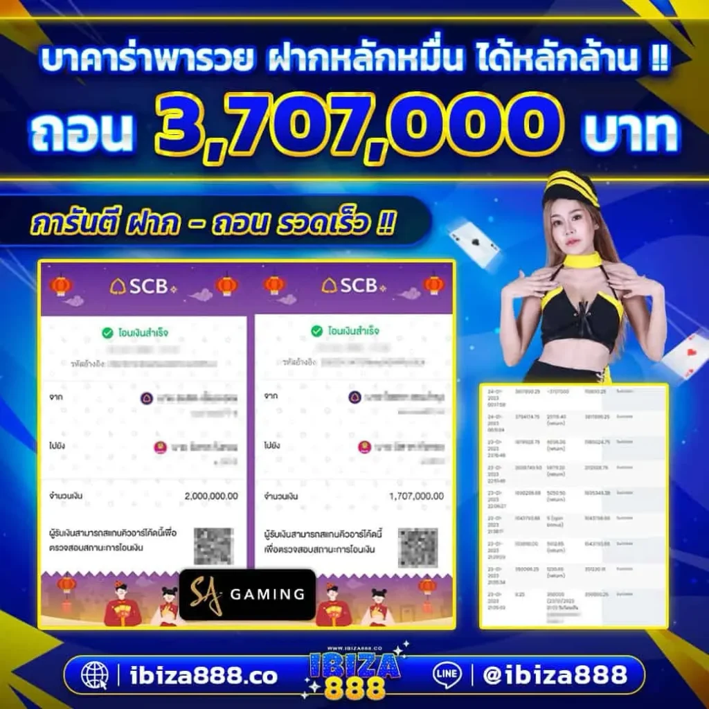 เว็บ ibiza888 จ่ายจริง มีรีวิวและหลักฐานการโอน จากลูกค้าตัวจริง จ่ายทุกบิล บิลล้านก็จ่าย